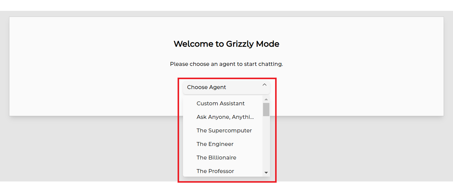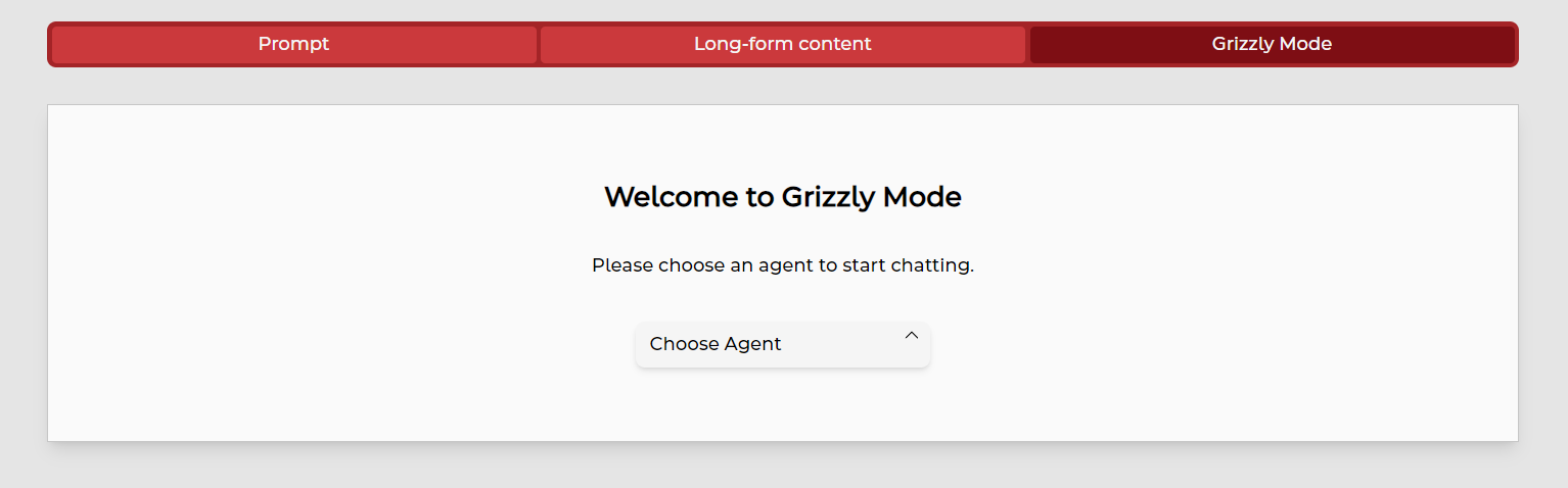 With Grizzly Mode, you can start chatting with a specific AI chat agent—your very own AI expert, on demand.